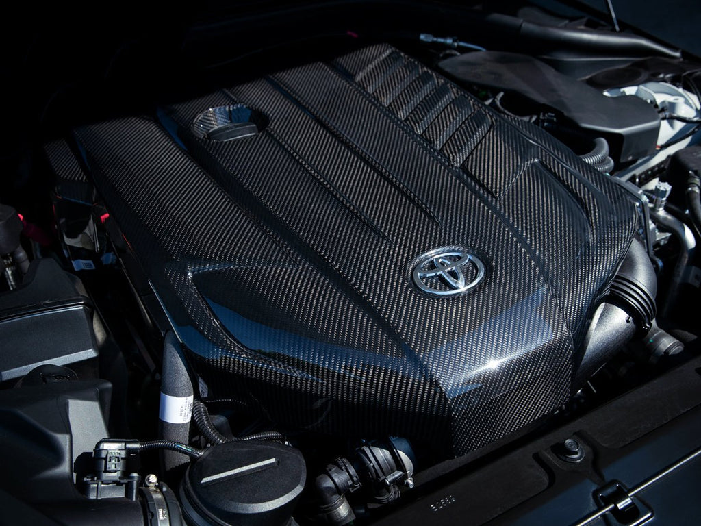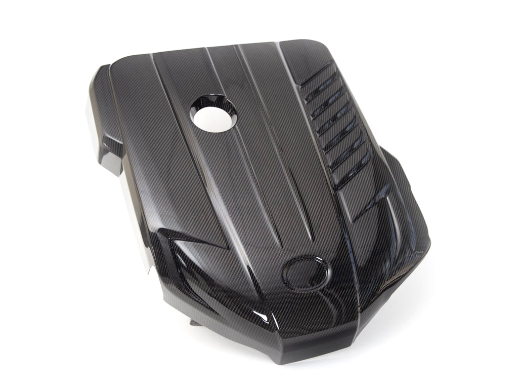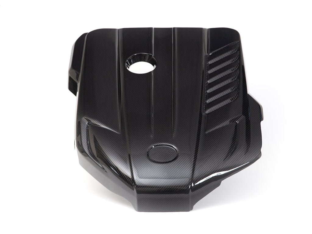 The AutoTecknic dry carbon fiber engine cover features high-quality carbon fiber that aesthetically improves the engine bay appearance and differentiates it from the OEM.