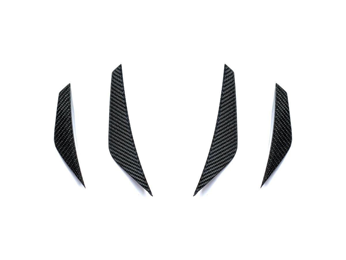 The AutoTecknic Dry Carbon Fiber Canards are the comprehensive solution to tune the front of a car's handling aerodynamically. Made of lightweight and durable carbon graphite composites, AutoTecknic Dry Carbon Fiber Canards help increase front down-force at high speeds. The added downforce stabilizes the vehicle chassis during hard cornering and increases traction which equates to faster lap times. The carbon fiber aesthetic characteristics also add more aggressive styling to the G80 M3 and G82/ G83 M4.