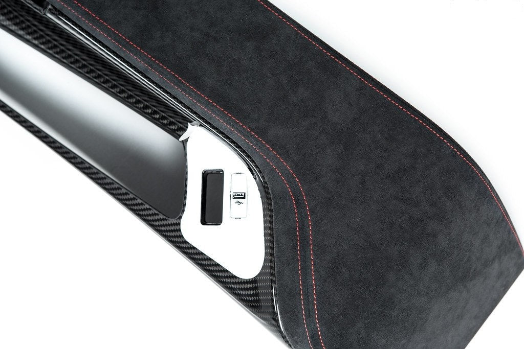 • M2 CS center console arm pad in Alcantara with Red stitching