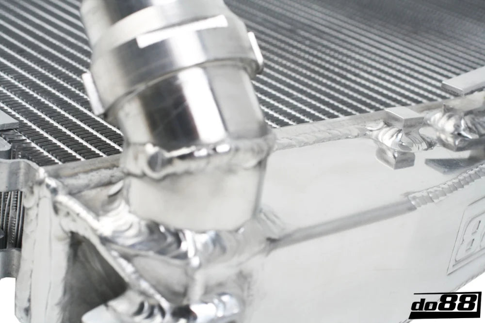 The DO88 radiator is constructed to deliver the best cooling efficiency during tough conditions. Exclusively manufactured in aluminum with uninterrupted welds, it guarantees reliability and endurance when you really need it. The increased core volume improves cooling efficiency and lowers the fluid temperature. Naturally, this being a do88 performance product, we have executed thorough, severe and continues tests developing this product to ensure the best performance. Not one compromise has been made. This radiator is immensely optimized to the given space for an easy drop-in-fitment. This is the undoubted choice for the inspired enthusiast or the race car driver demanding reliability at the limit. We take comfort in saying this radiator is M3 worthy!