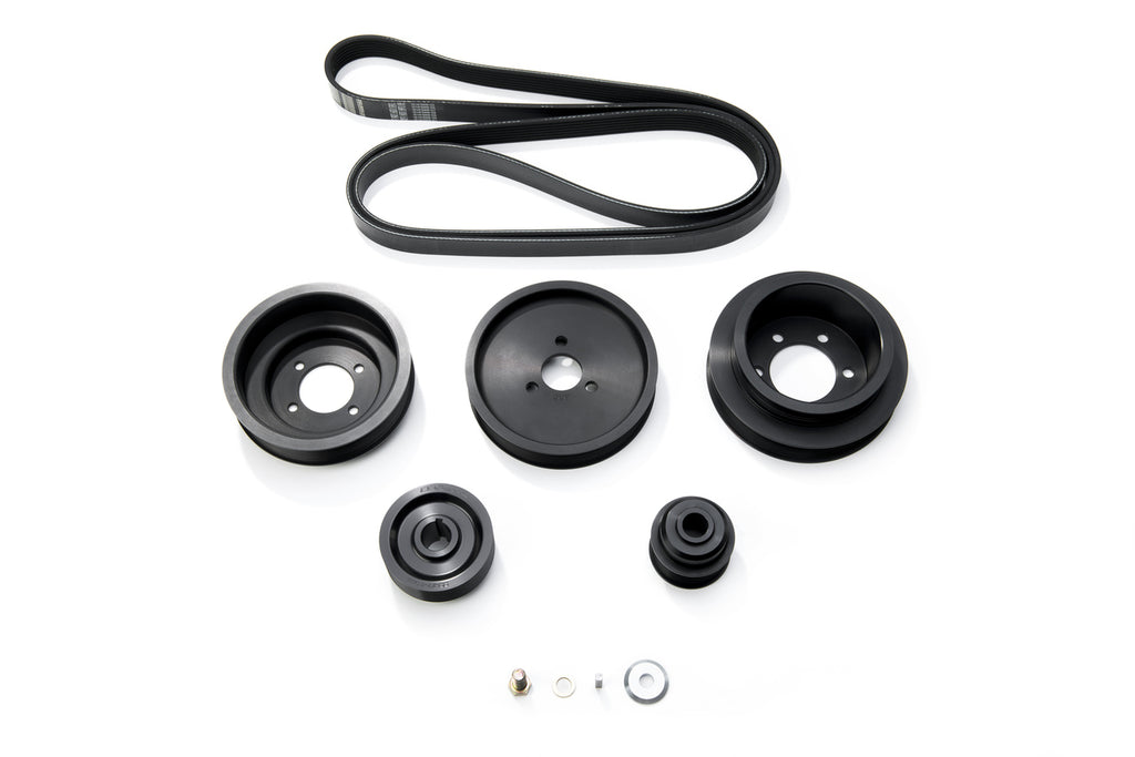 - CNC hard anodized water pump pulley (very important for proper water pump gear ratio)