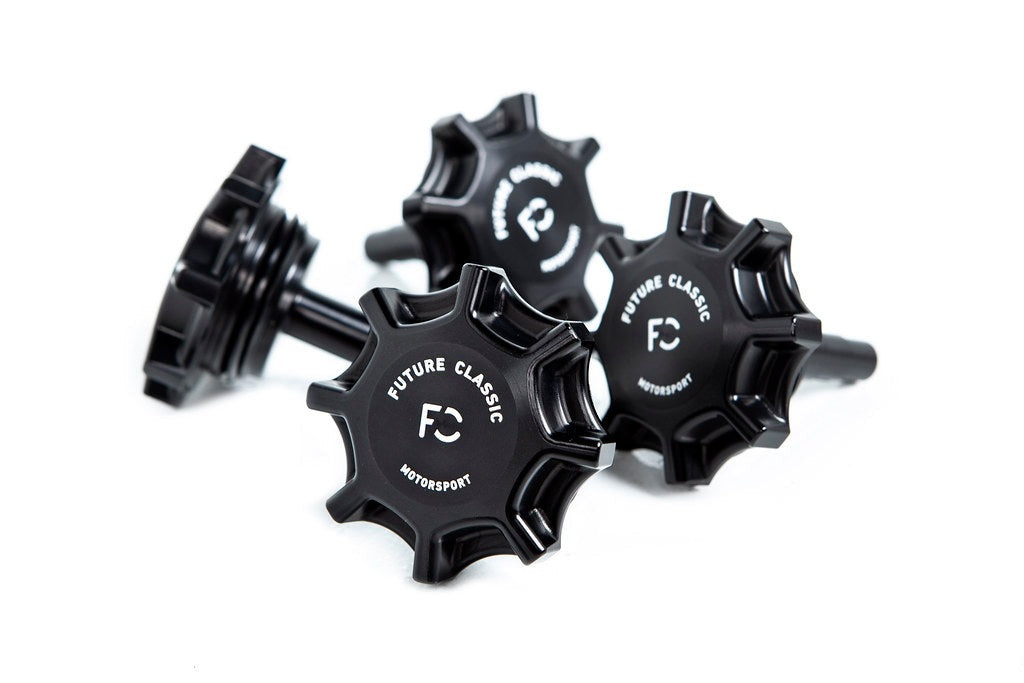 For enthusiasts who cannot run our expansion reservoir (or those that feel they don't require the extra headroom), we've decided to offer a billet aluminum cap replacement. This plug and play unit adds some visual appeal to an otherwise lackluster engine bay presentation while tangentially performing some light maintenance duty. Each 6061-T6 aluminum cap comes with a fresh OEM gasket and is available in four standard finishes: Ferrari Red, Royal Blue, Hard Coat Clear, and Hard Coat Black.