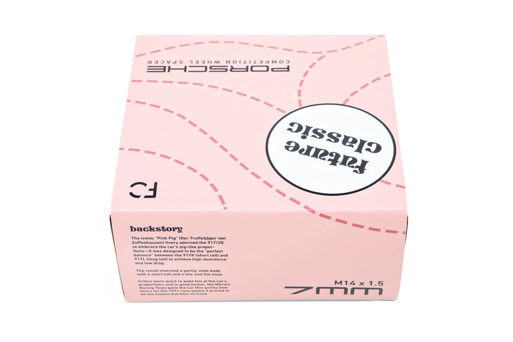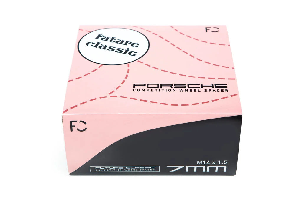 Echoing Future Classic’s racing enthusiasm, the Porsche “livery box” is fashioned with the infamous “Pink Pig” garb seen on the 917 racecar. Appropriately, these spacers are proudly worn by championship winning cars—including Cooper McNeil's WeatherTech 997.2 and the Off-Road Rhino Chassis 001-003.