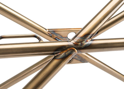 The rear portion of the cage is joined to the main hoop utilizing specifically designed interlocking clevises allowing easier installation and shipment. Designed using the factory integrated mounting, this bar features cup car style gussets in the rear X-brace.