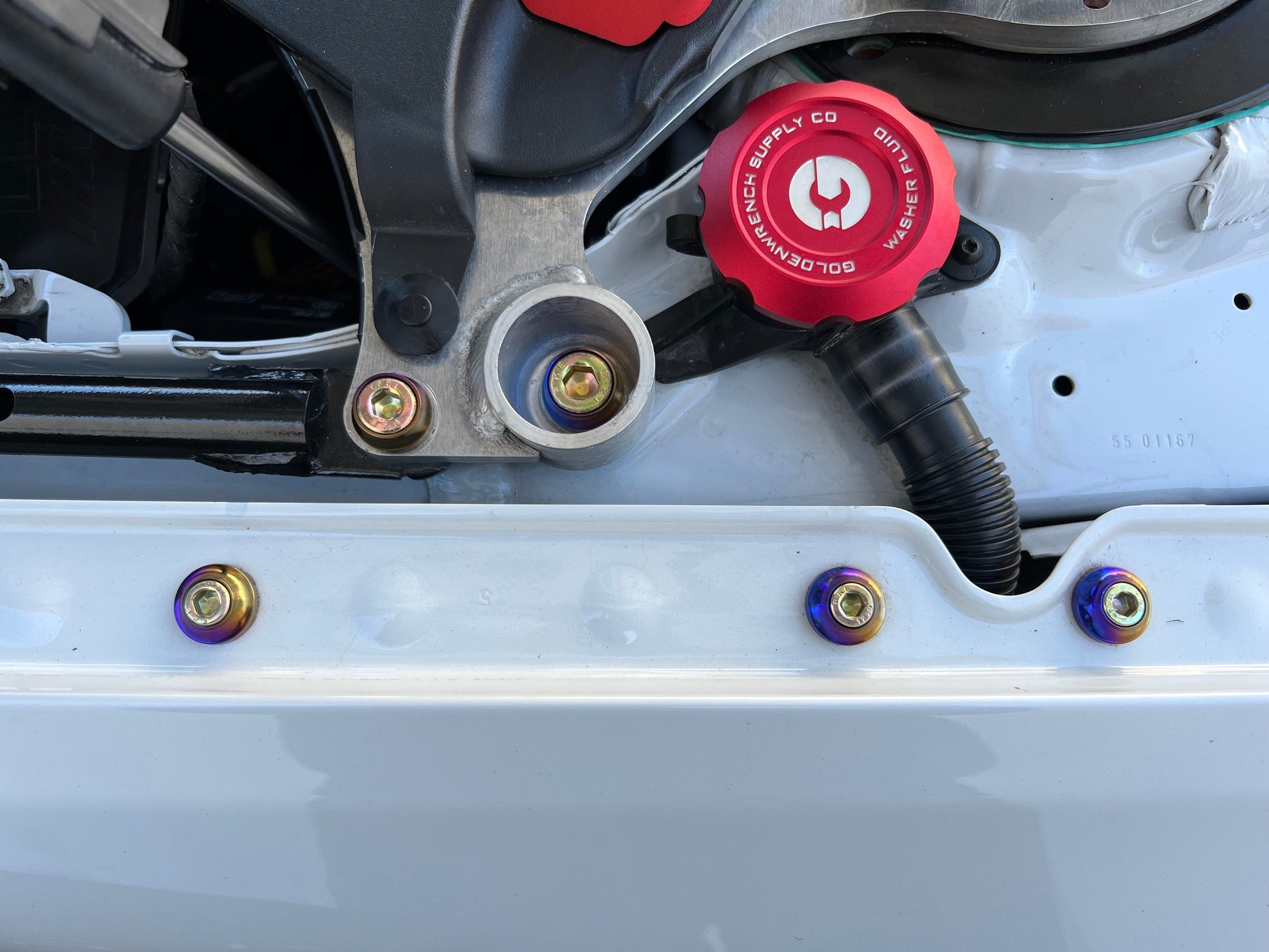 - Replacement dress up fasteners for the BMW F8x aluminum strut brace