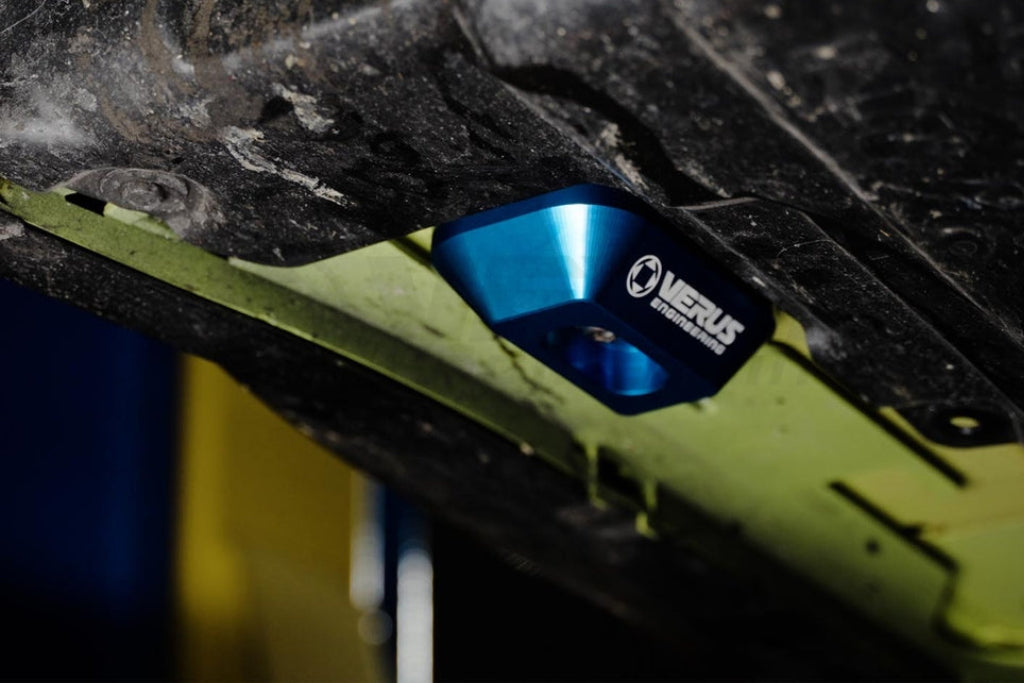 The factory plastic jack pads are easily ruined and damaged during maintenance or tire changes at the track. We developed these units to completely replace the factory units with a solid chunk of aluminum to ensure this never happens again.